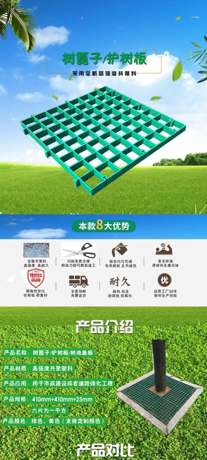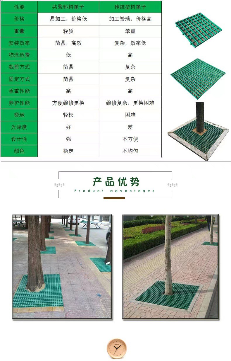 (2)玻璃钢树篦子耐老化性:能有长久使用在20年的时候都不会坏;
